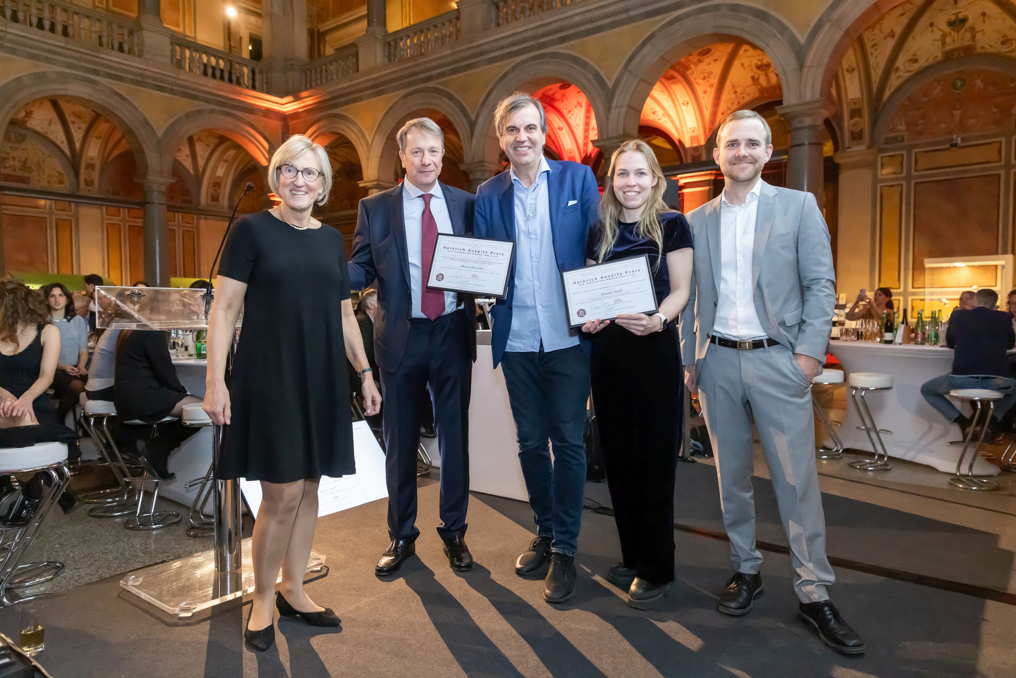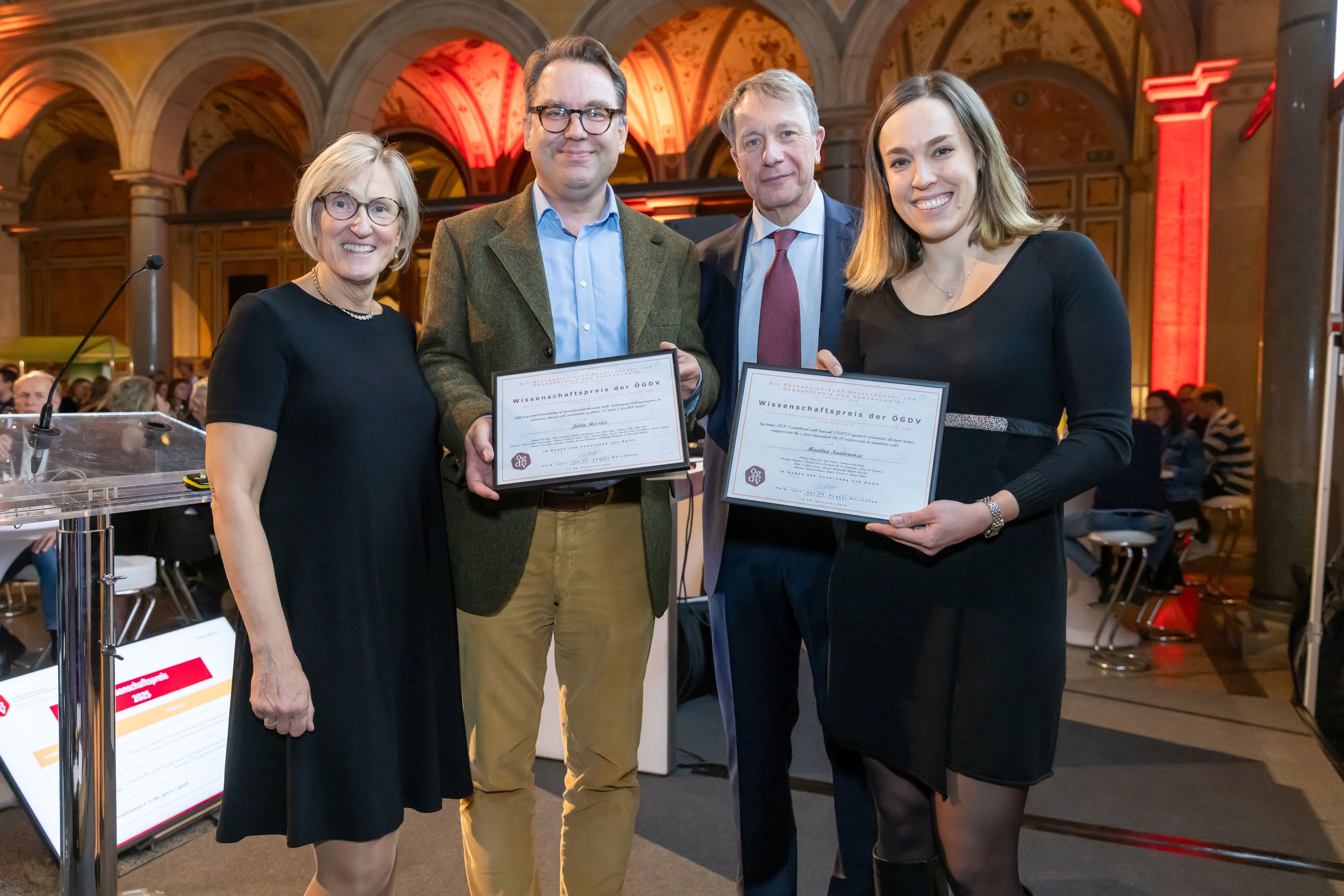 Martina Sanlorenzo von der Forschungsgruppe Sibilia bekam den Wissenschaftspreis für ihre Arbeit über neue Therapieansätze bei Hautkrebs (Systemic IFN-I combined with topical TLR7/8 agonists promotes distant tumor suppression by c-Jun-dependent IL-12 expression in dendritic cells) und Karoline Strobl von der Forschungsgruppe Bauer bekam den Heinrich Auspitz Preis für ihre Arbeit über Haarausfall bei Krebstherapien (JAK-STAT1 as therapeutic target for EGFR de!ciency-associated in"ammation and scarring alopecia).